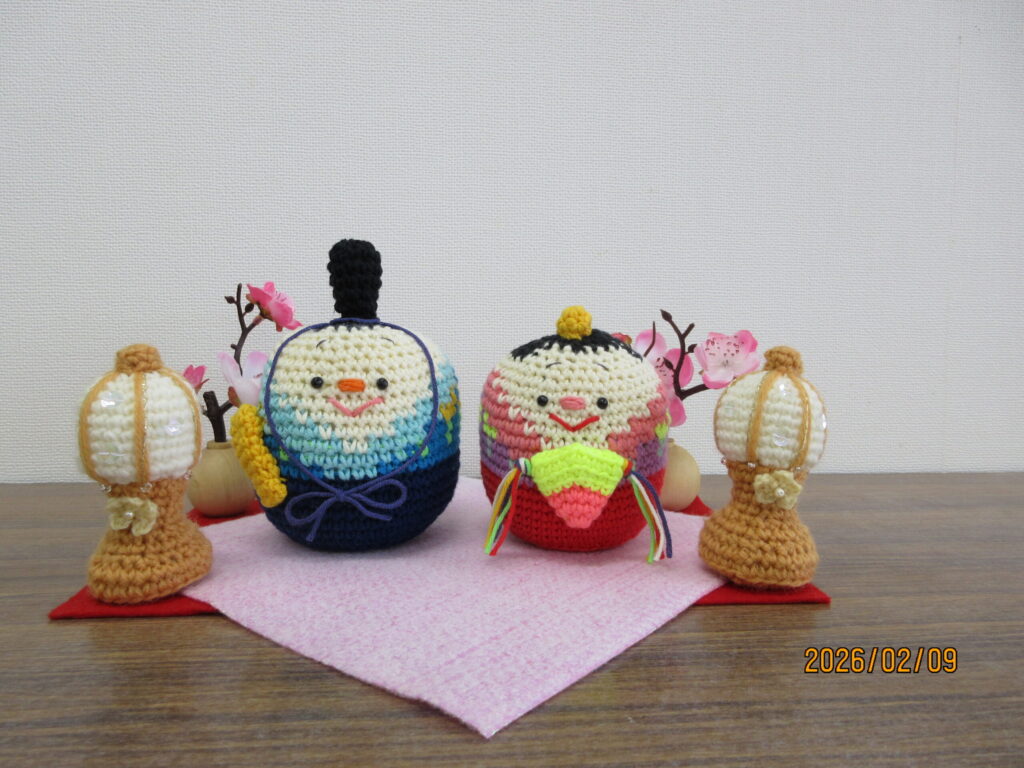 「形は玉型ですがこれだけ多色使いの編み込み模様は初めてだったので苦戦しました。キラキラにしたぼんぼりですが昨年は編めなかったものなので完成して嬉しいです」とのコメントをいただいています。配色豊かに可愛らしく仕上がっています。春らしい色合いと表情の可愛さがとても魅力的です。