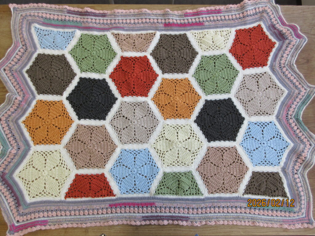 六角モチーフブランケット