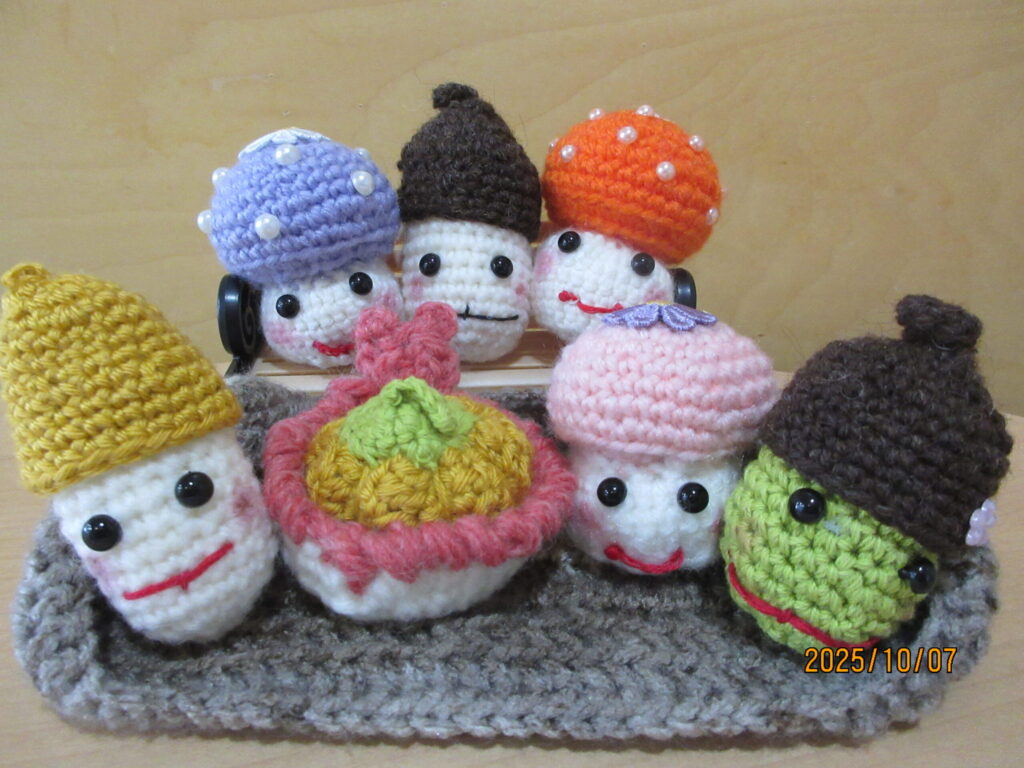頑張ったところ、PRポイントとして「どんぐりの頭とかキノコの頭と胴体のバランス」とのコメントをいただいています。色鮮やかに可愛らしい作品が仕上がりました。皆それぞれに個性のある愛らしい表情をしていますね。