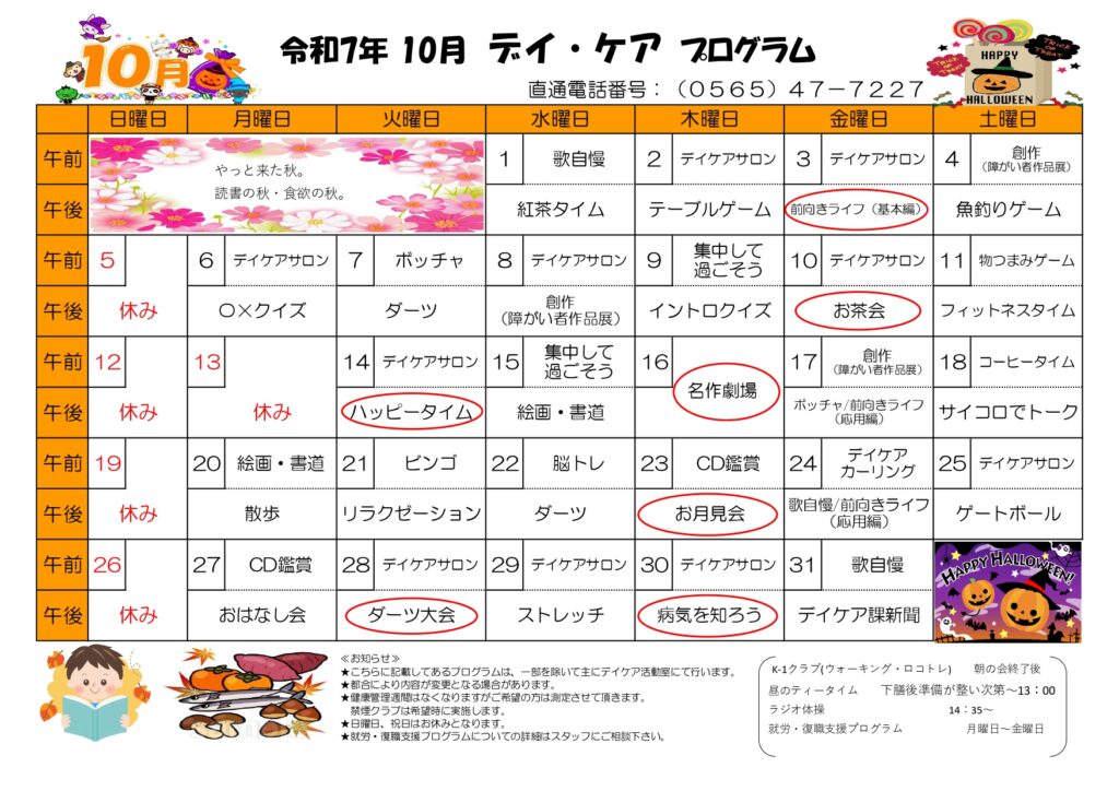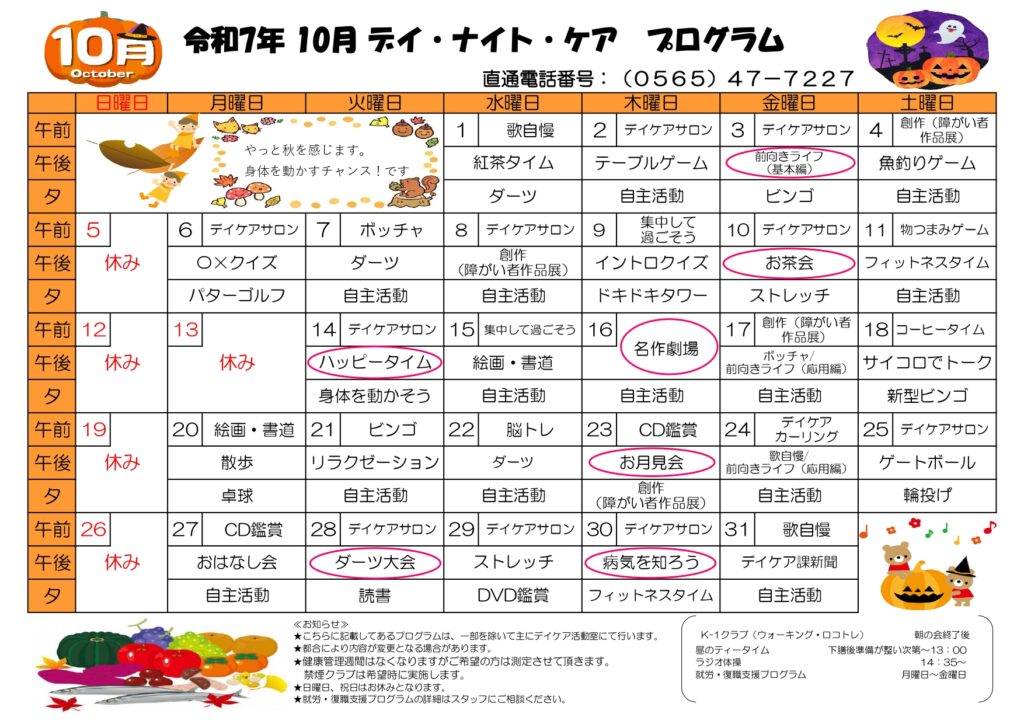 10月 デイ・ケア デイ・ナイト・ケア プログラム表