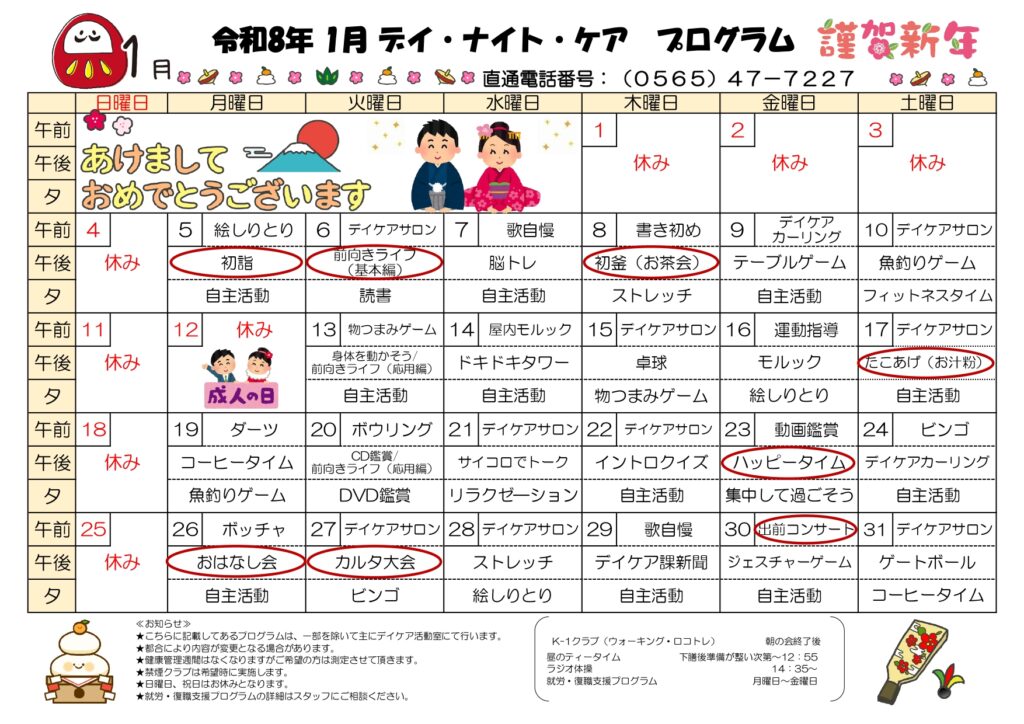 2026年1月 デイ・ケア デイ・ナイト・ケア プログラム表